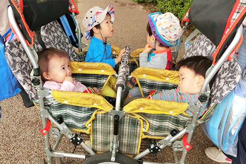 0歳〜2歳の子たちは、水遊び場や、少し離れた児童館・大きな公園へ行きます。