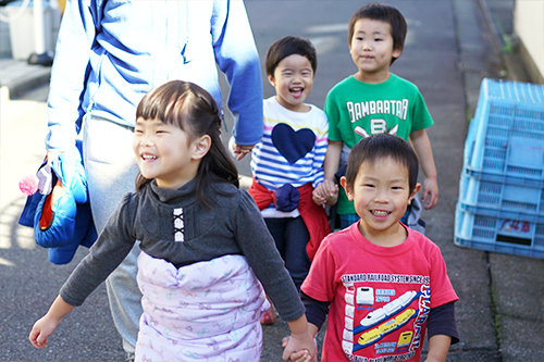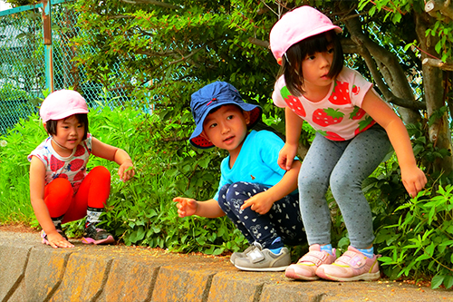 にんじんは小さな保育園です。園庭はありません。そのかわりに毎日公園へ散歩に出かけます。