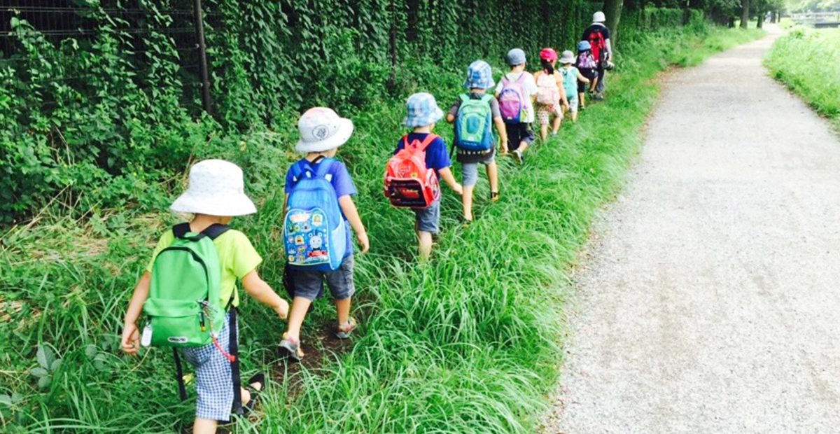 月に一度、緑地や川に自然を求めて遠くに出かけます。子どもたちの大好きなバスや電車にも乗ります。