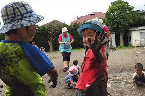「自由にのびのびと、のんびり育てる」子どもの自然に成長する本来の力をそのまま伸ばしていきたいと考えています。「○才だからこれだけの発達が望まれる」という保育観にたった働きかけや教育的なことはしません。